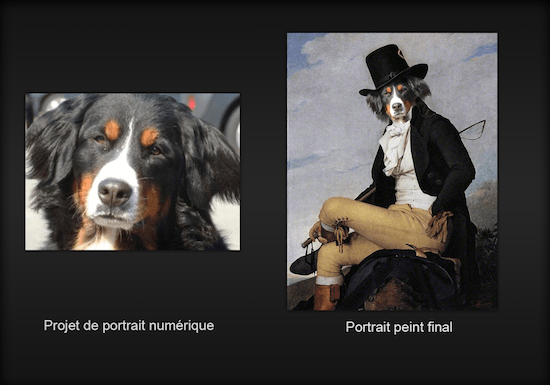 Vous aussi réaliser le portrait de votre chien!mâle ou femelle, habillé en costume d'époque XVIIIéme  XIXéme ou XXé siècles. pour toute demande passer par le formulaire devis et envoyer les photos de votre chien, je vous réaliserai 3 projets gratuits, suite à la validation du projet j'exécuterai la peinture huile sur toile suivant la dimension