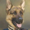 Portrait de chien Berger Allemand en officier 100×70 cm